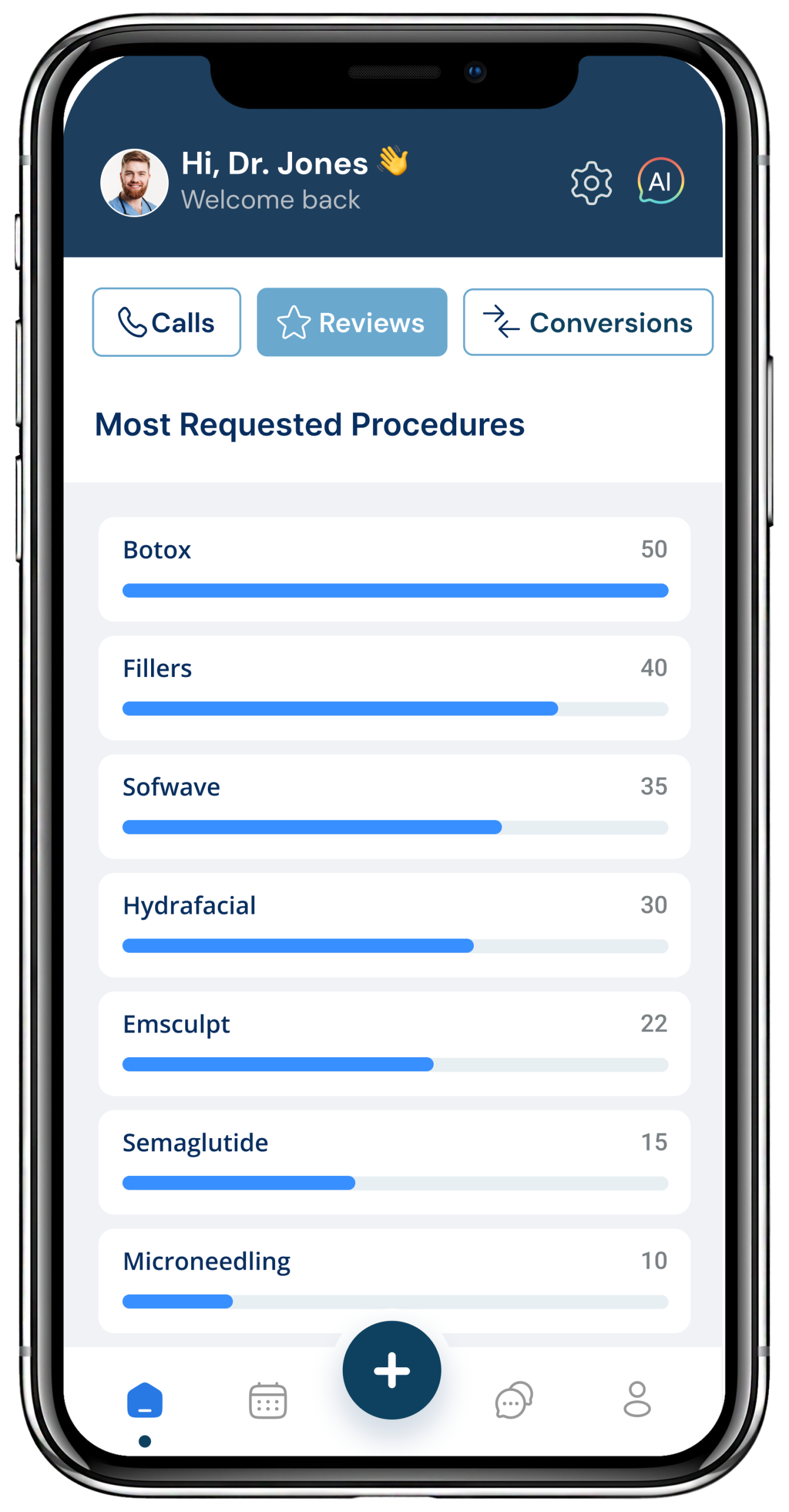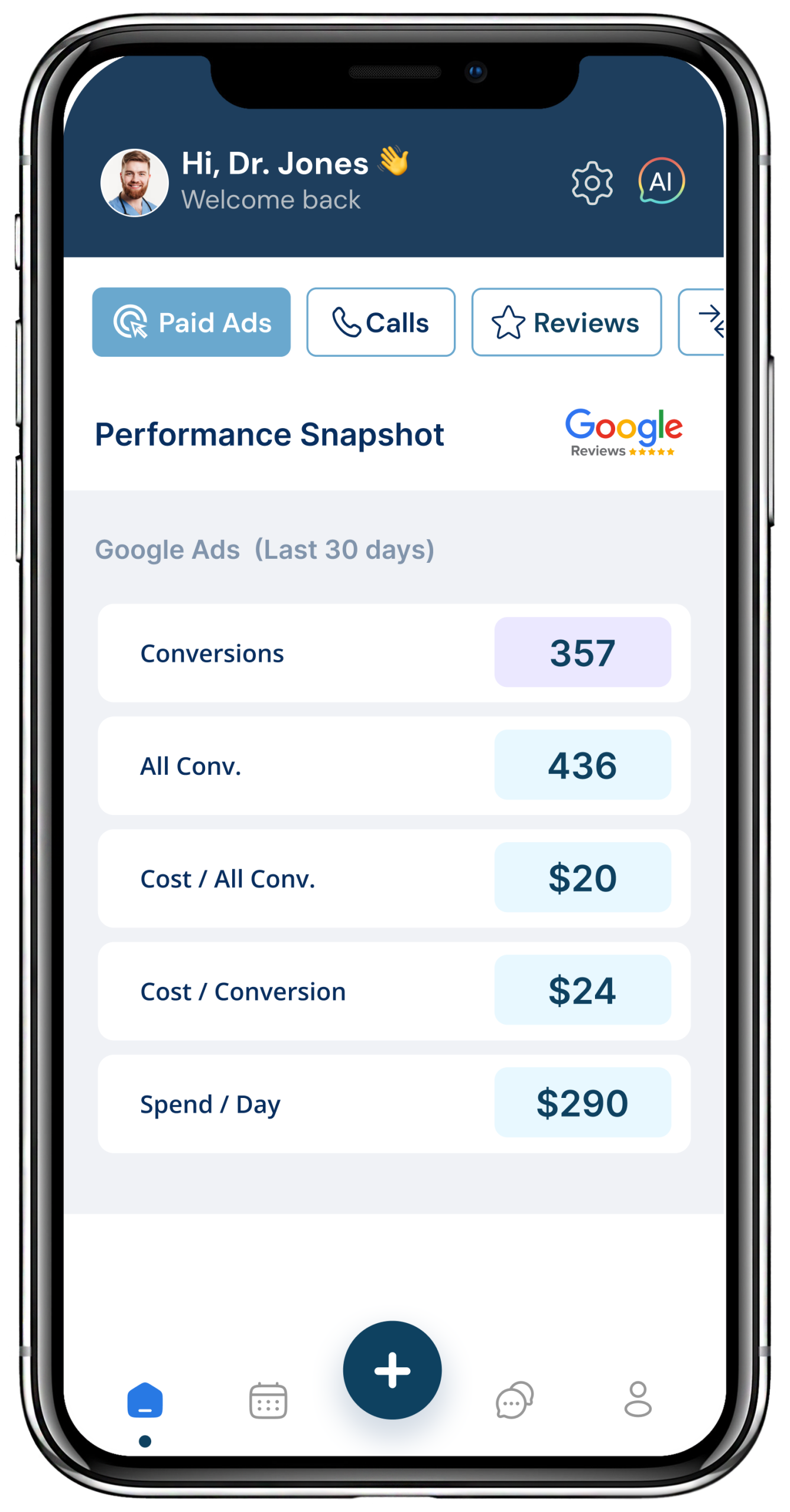 missed calls, and patient reviews.