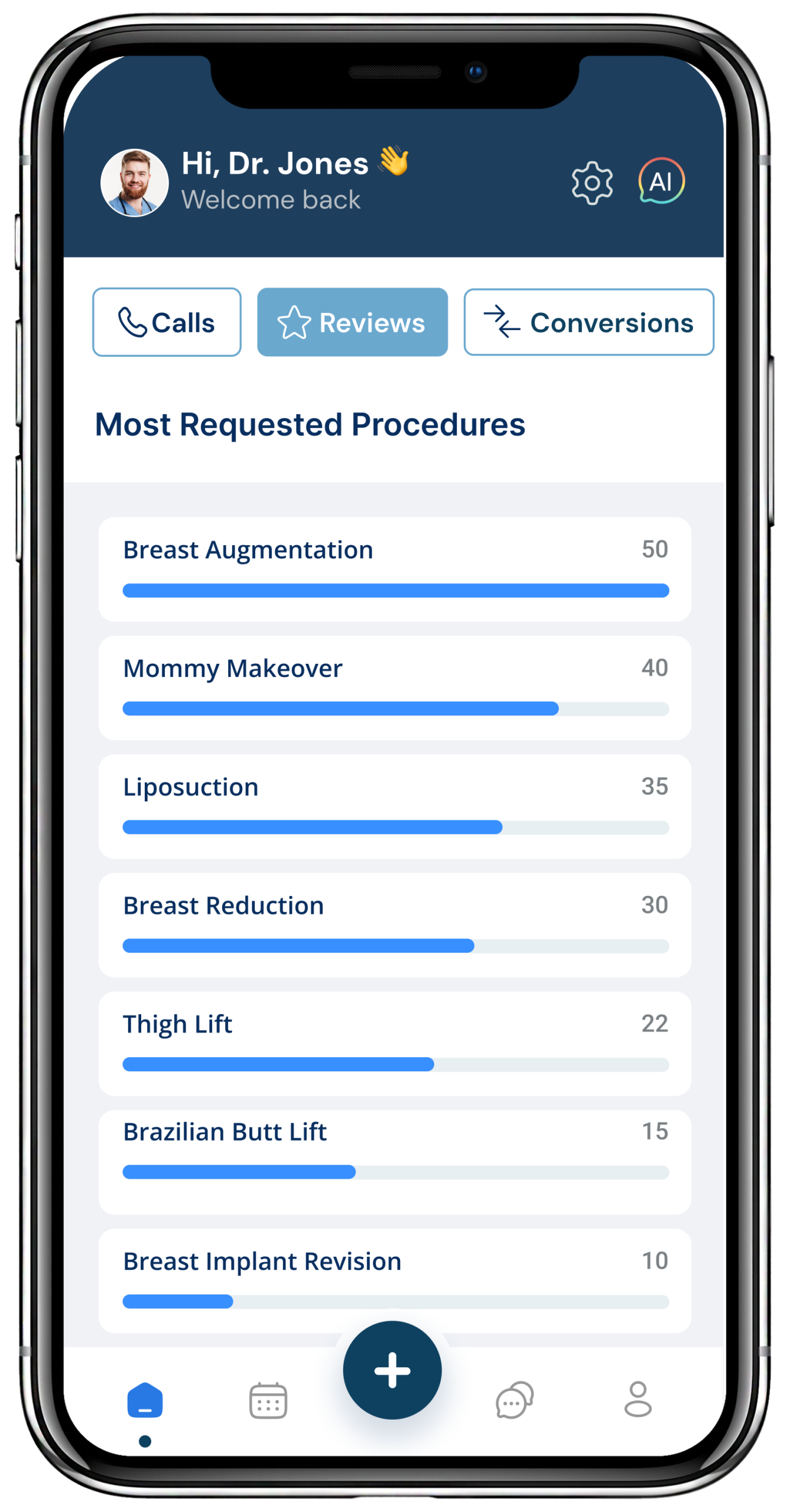 missed calls, and patient reviews.