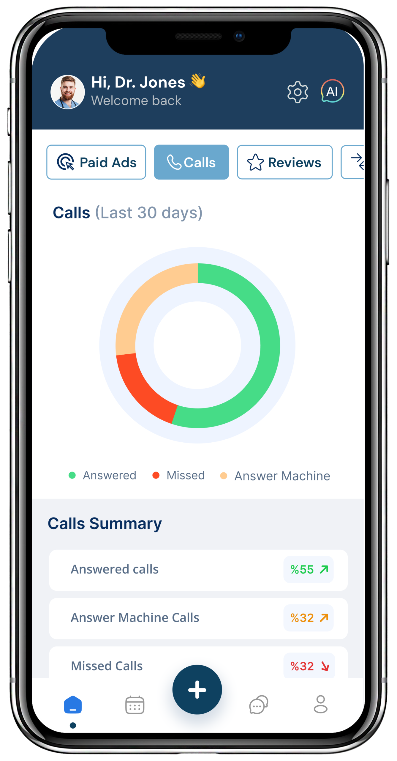 missed calls, and patient reviews.