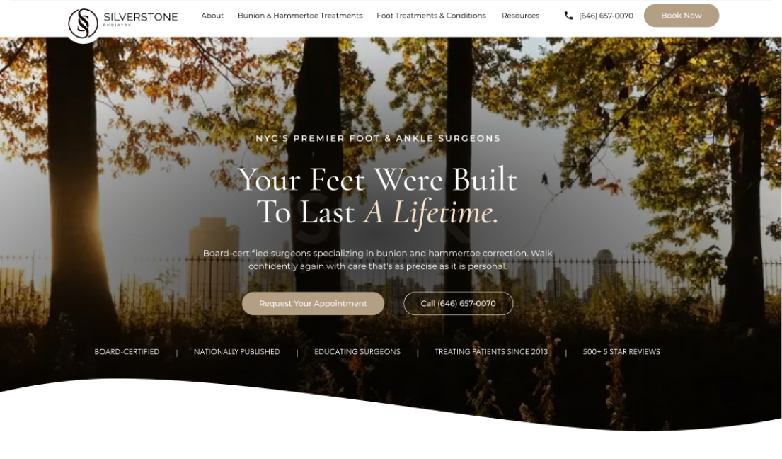 Dr. Suzanne Levine is a highly experienced podiatric surgeon in NYC with over 25 years of expertise. Her custom podiatric website was designed, built, and launched in under 4 weeks.